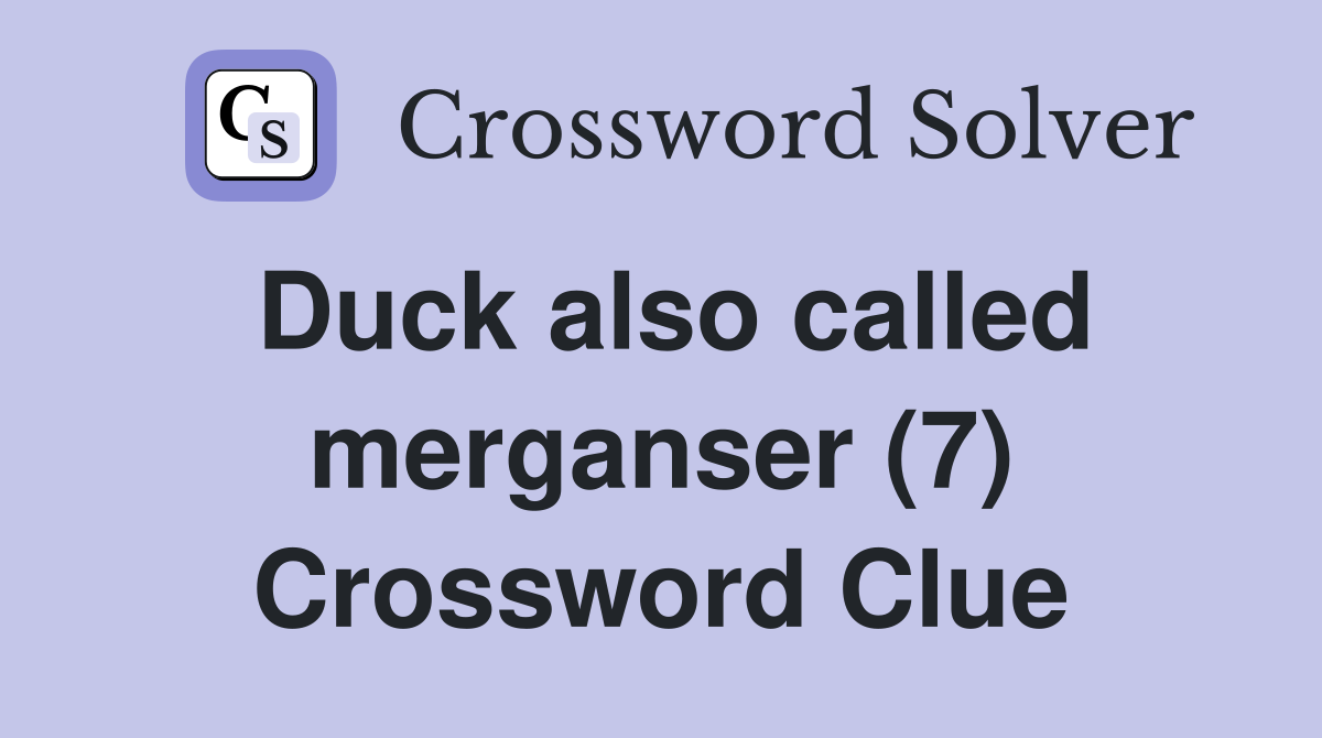 Duck also called merganser (7) Crossword Clue Answers Crossword Solver