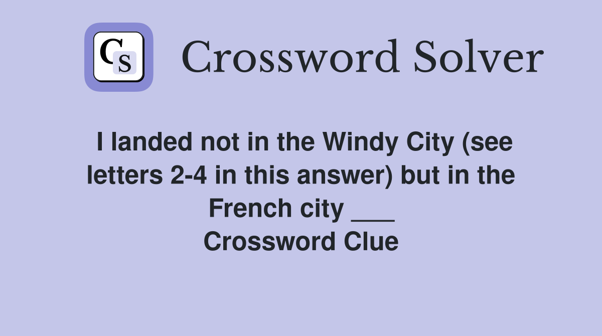 I landed not in the Windy City (see letters 2 4 in this answer) but in