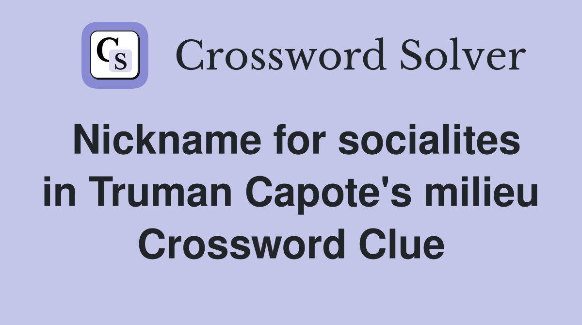 Nickname for socialites in Truman Capote #39 s milieu Crossword Clue