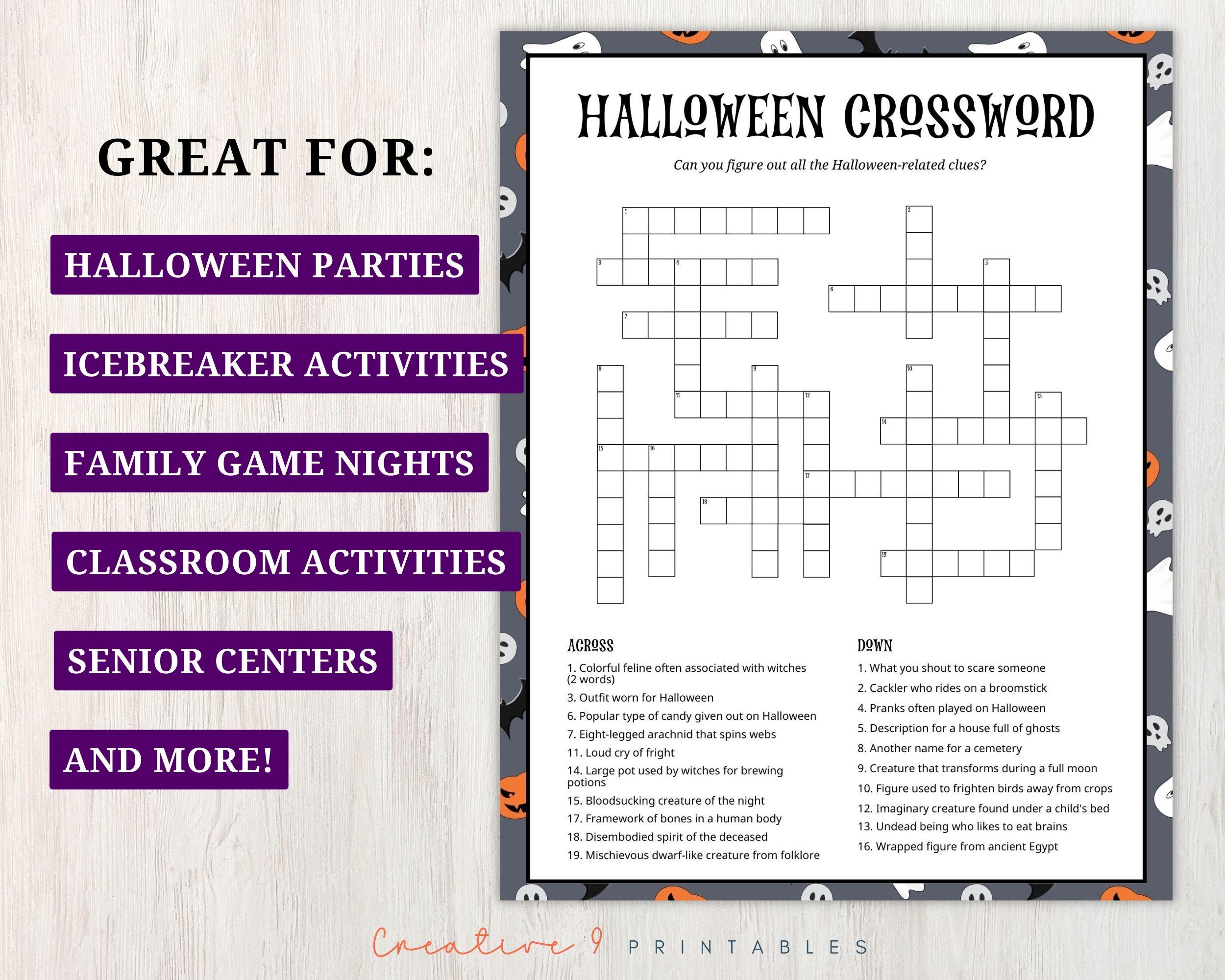 Halloween Crossword Printable Game for Kids and Adults 20 Halloween