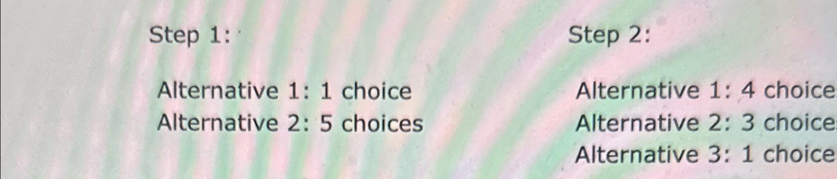 Solved Step 1:Alternative 1: 1 choiceAlternative 2: 5 Chegg com
