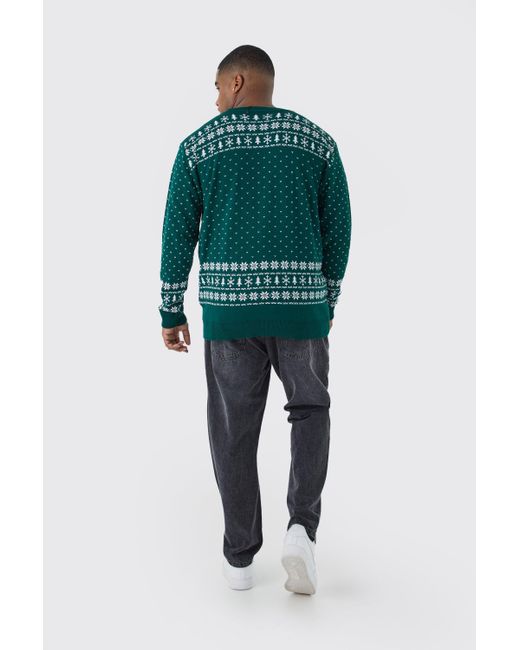 BoohooMAN Plus Weihnachtspullover mit I Got Ho Ho Hos Print in Grün für