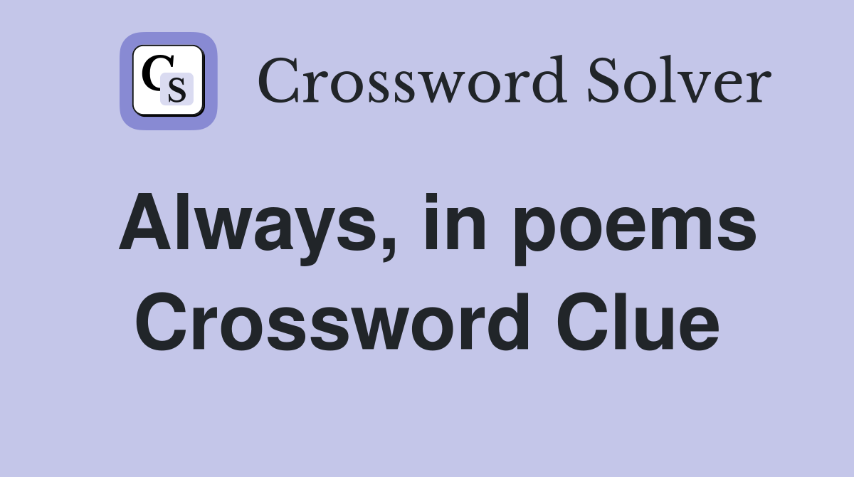 Here are some of the images for Always In Poetry Crossword Clue that we found in our website database.