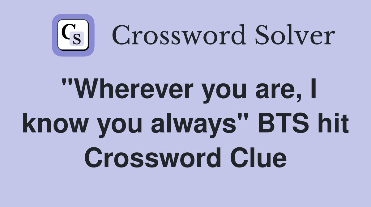 quot Wherever you are I know you always quot BTS hit Crossword Clue Answers