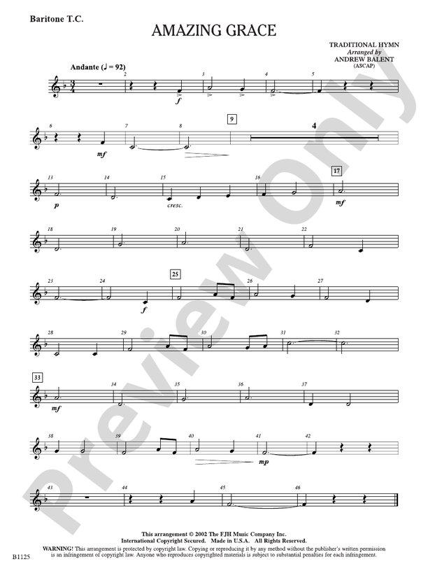 Amazing Grace: Baritone T C : Baritone T C Part: Andrew Balent