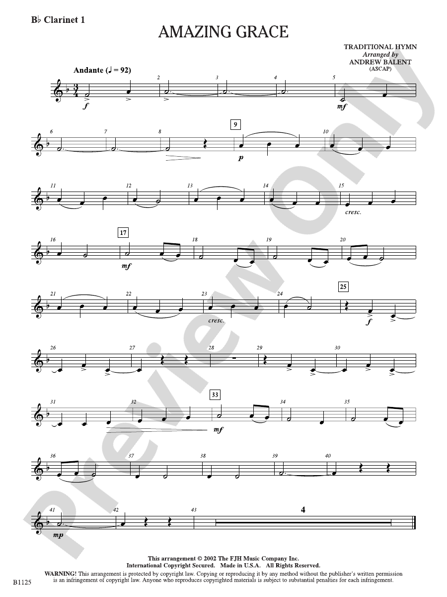 Free Lead Sheet Amazing Grace Clarinet sheet music Sheet music