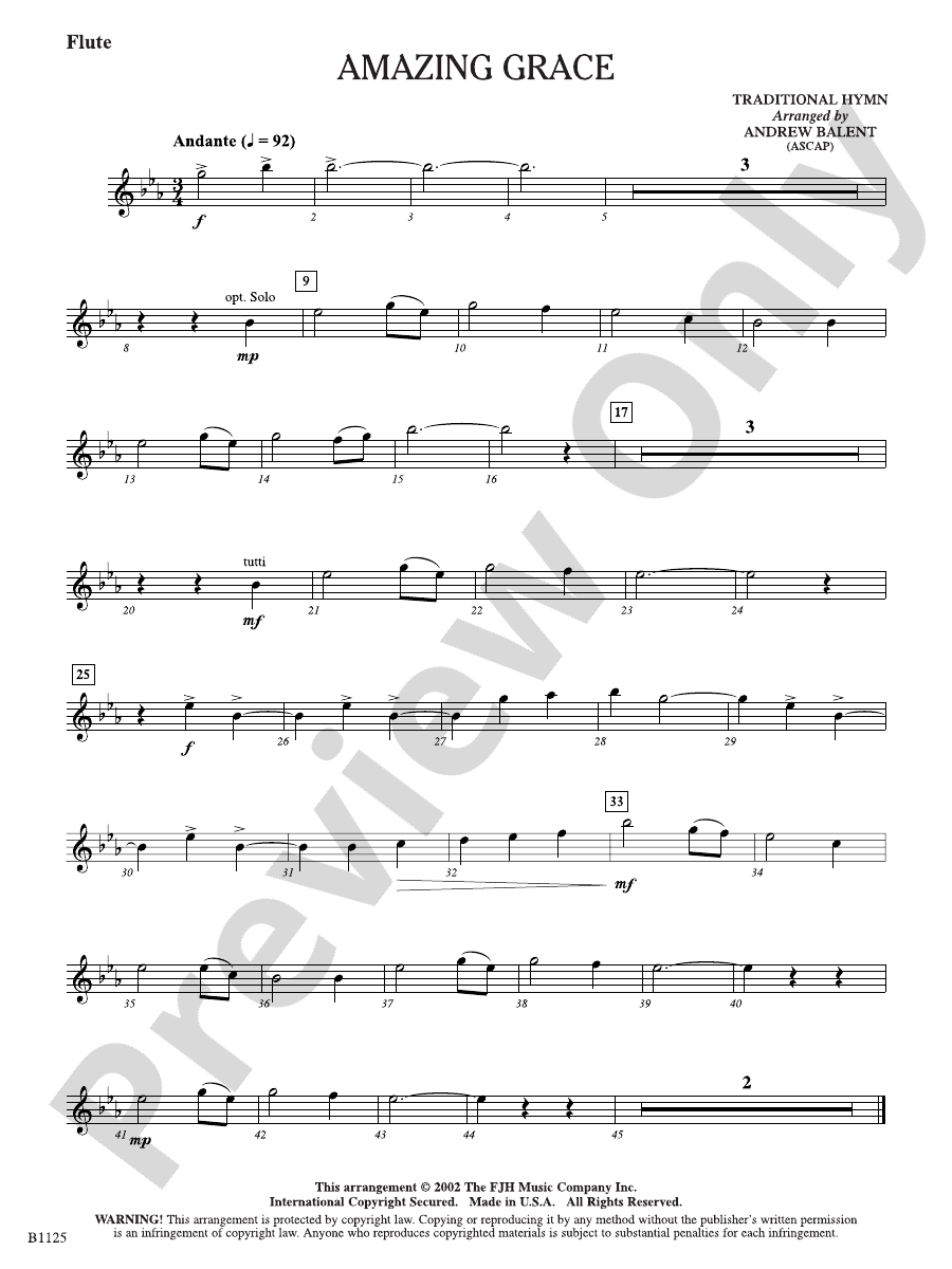Amazing Grace: Flute: Flute Part: Andrew Balent Digital Sheet Music