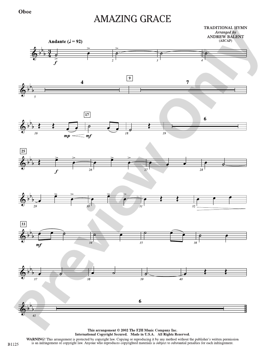 Amazing Grace: Oboe: Oboe Part: Andrew Balent Digital Sheet Music