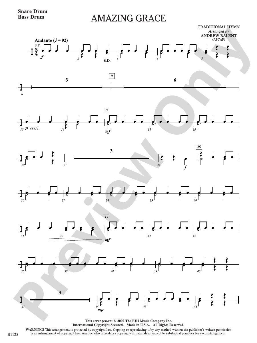 Amazing Grace: Snare Drum: Snare Drum Part: Andrew Balent Digital