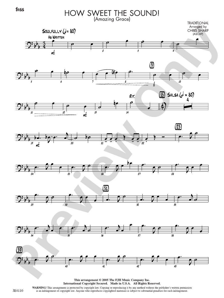 How Sweet the Sound (Amazing Grace): Bass: Bass Part Digital Sheet