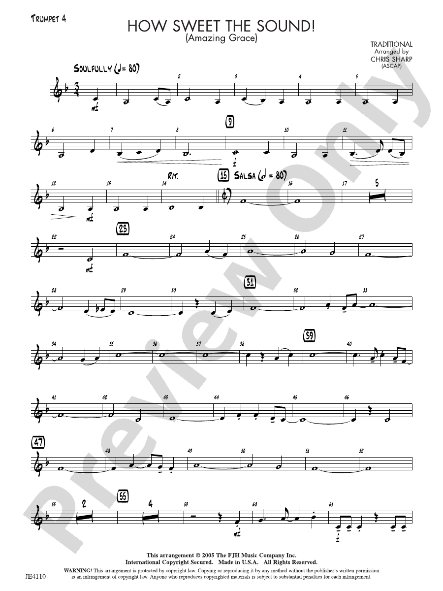 How Sweet the Sound (Amazing Grace): Trumpet 4: Trumpet 4 Part