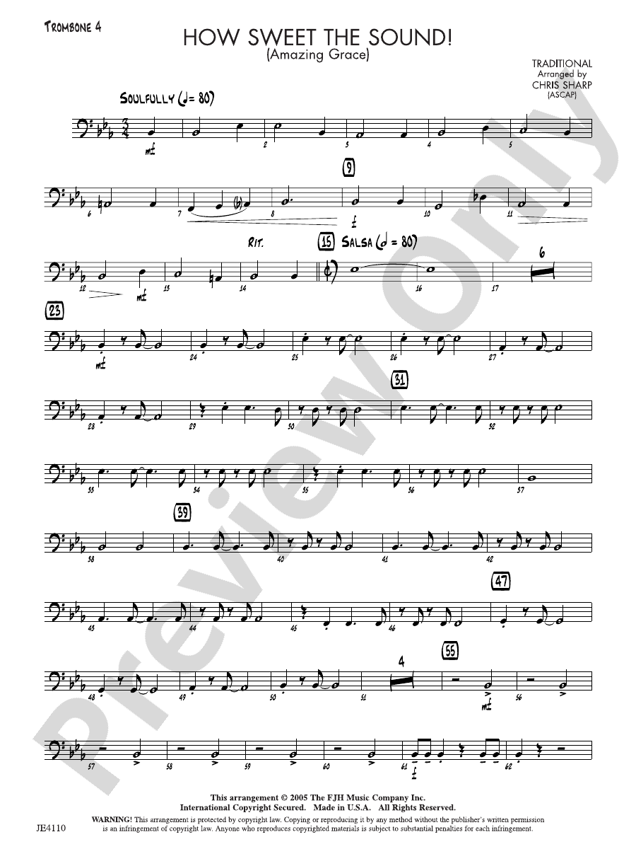 How Sweet the Sound (Amazing Grace): Trombone 4: Trombone 4 Part
