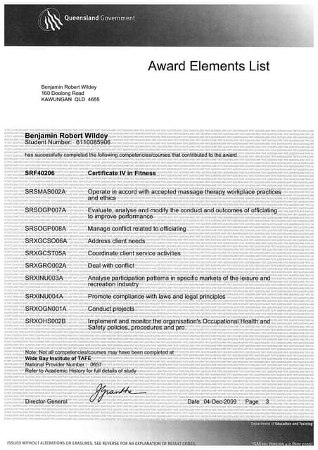 Certificate IV in Fitness SRF40206 TAFE Transcript P4 PDF