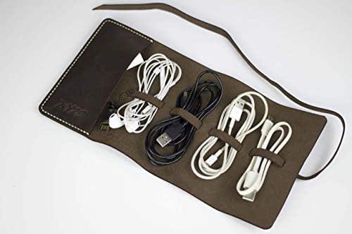 Amazon com: Leather Cord Organizer Wrap Holder Cable bag Roll Holder