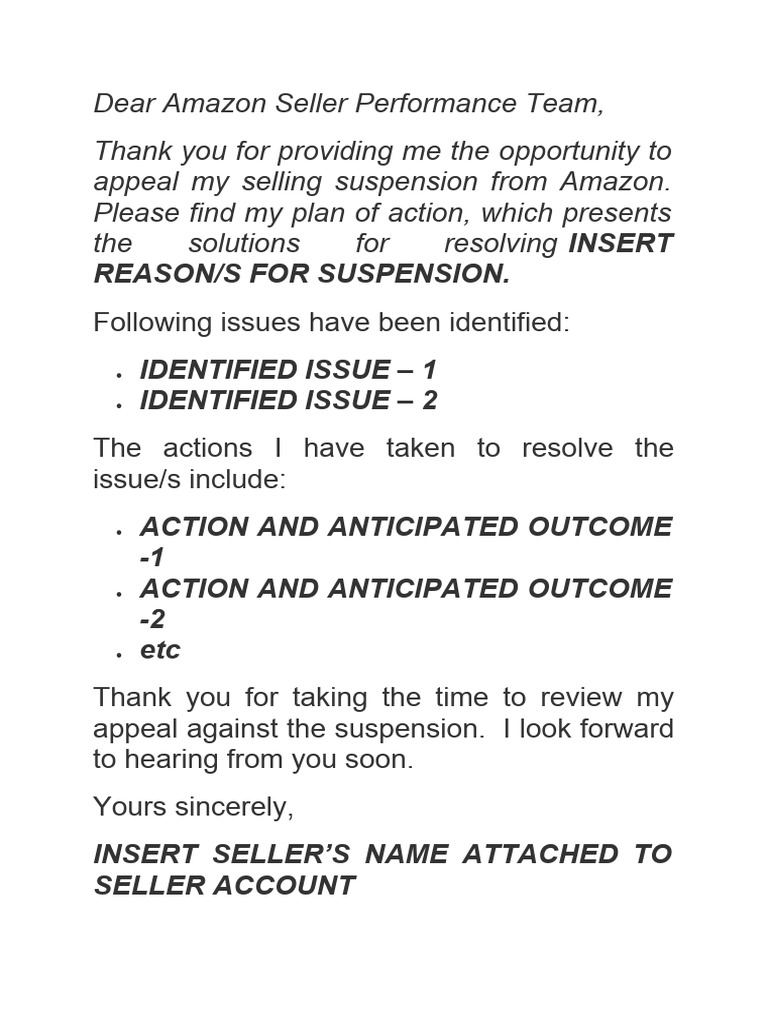 Amazon poa plan of action amazon appeal letter amazon reinstatement