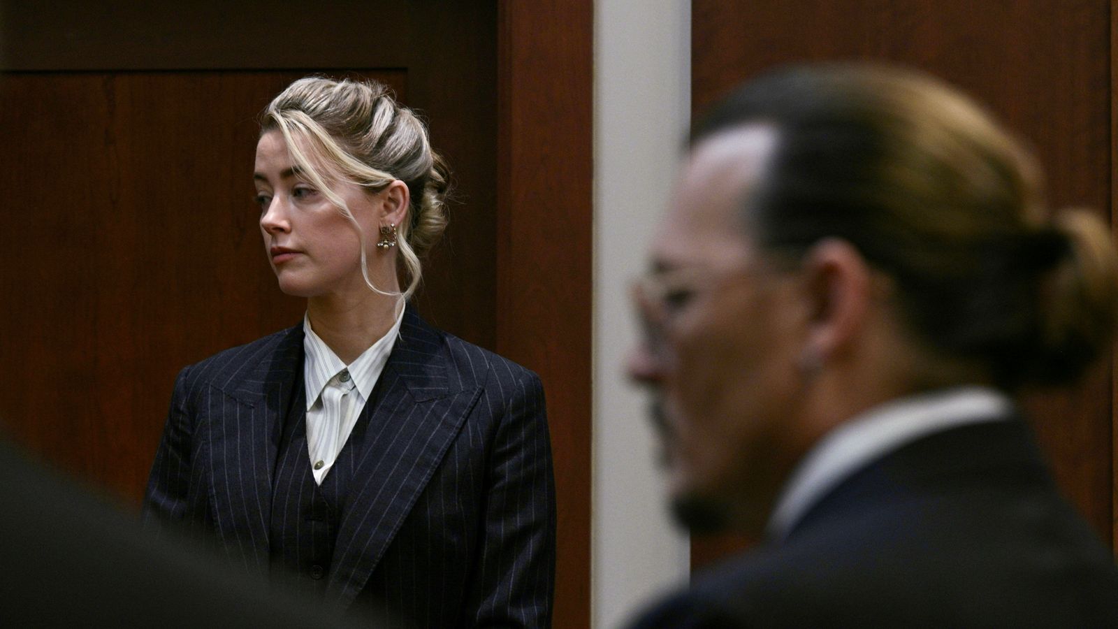 Amber Heard flinches as Johnny Depp walks toward her in court