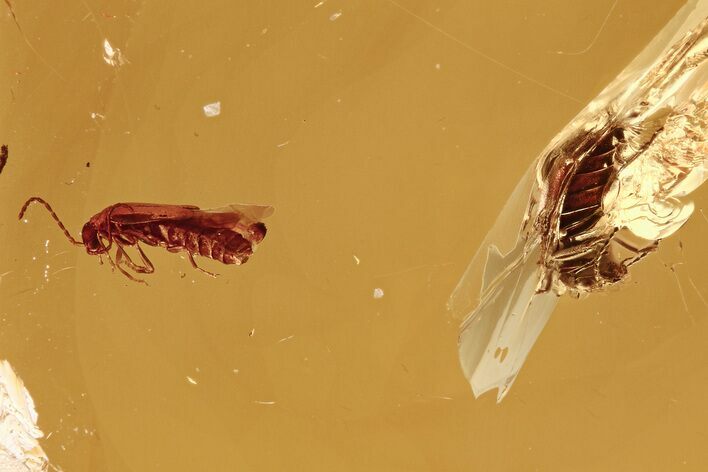 Detailed Fossil Marsh Beetle Larva and Fungus Gnat in Baltic Amber