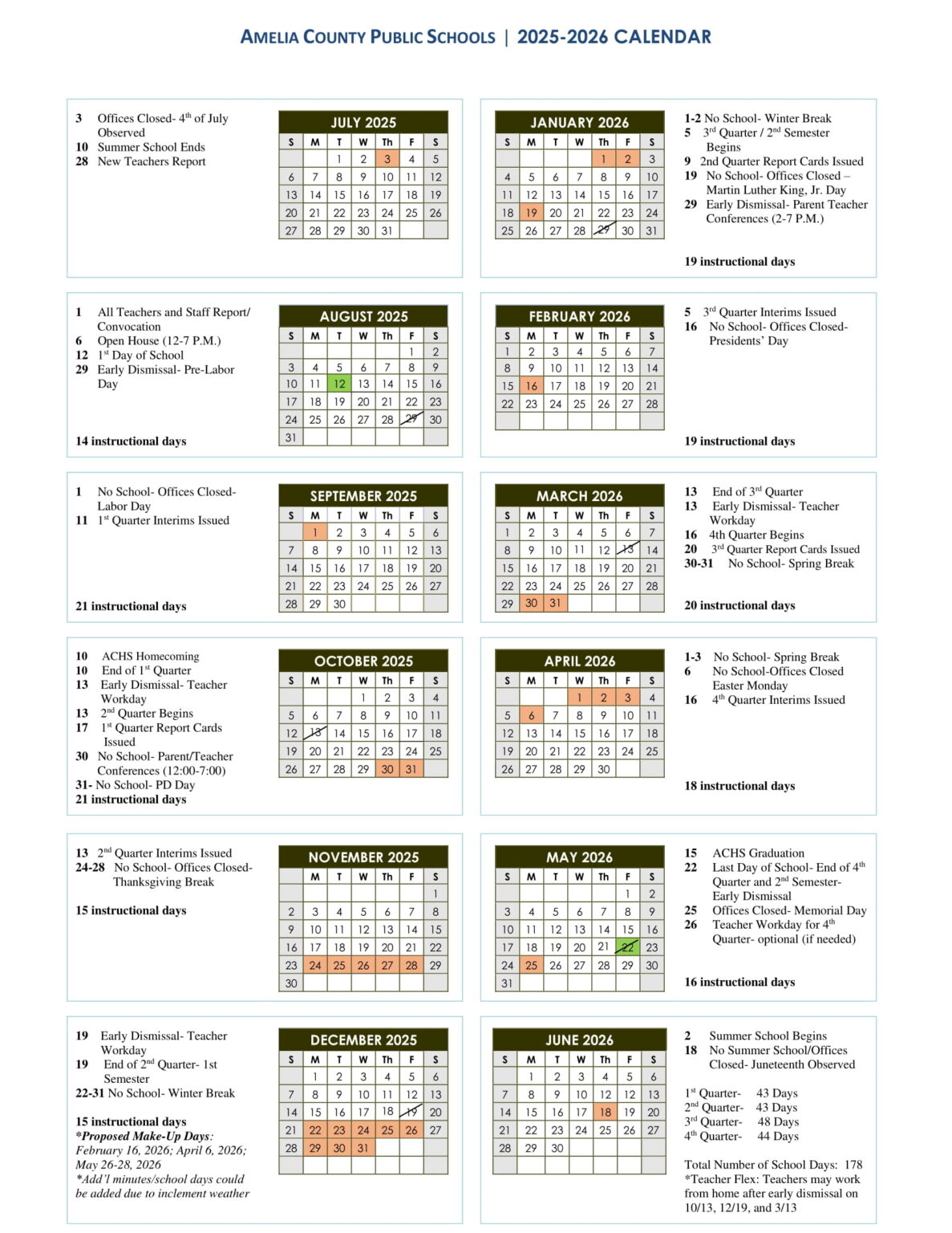 Amelia county public schools calendar 25 26 Revised PDF EduCounty