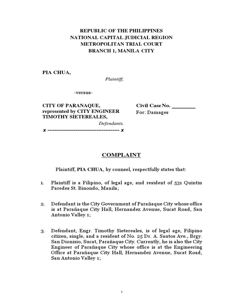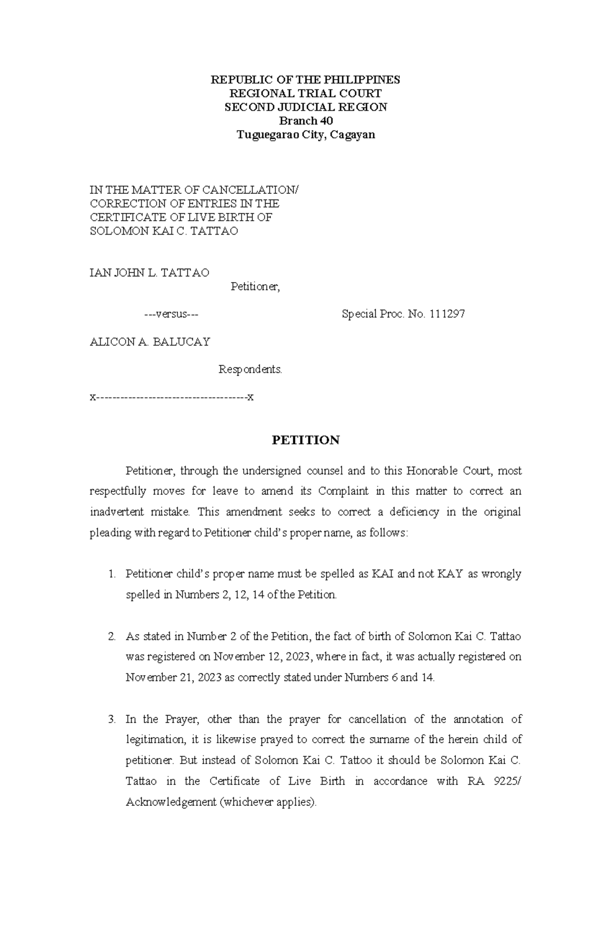 Motion to Amend Complaint REPUBLIC OF THE PHILIPPINES REGIONAL TRIAL