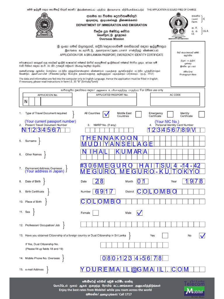 Application For A New Sri Lankan Passport Form K35 Sample PDF