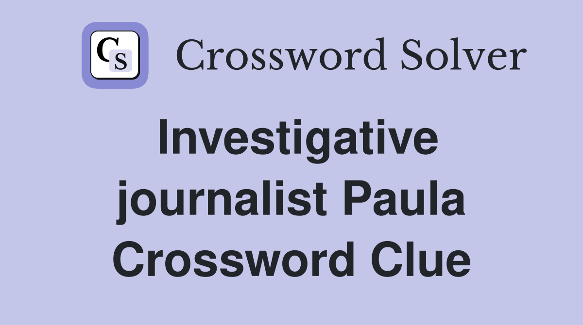 Investigative journalist Paula Crossword Clue Answers Crossword Solver