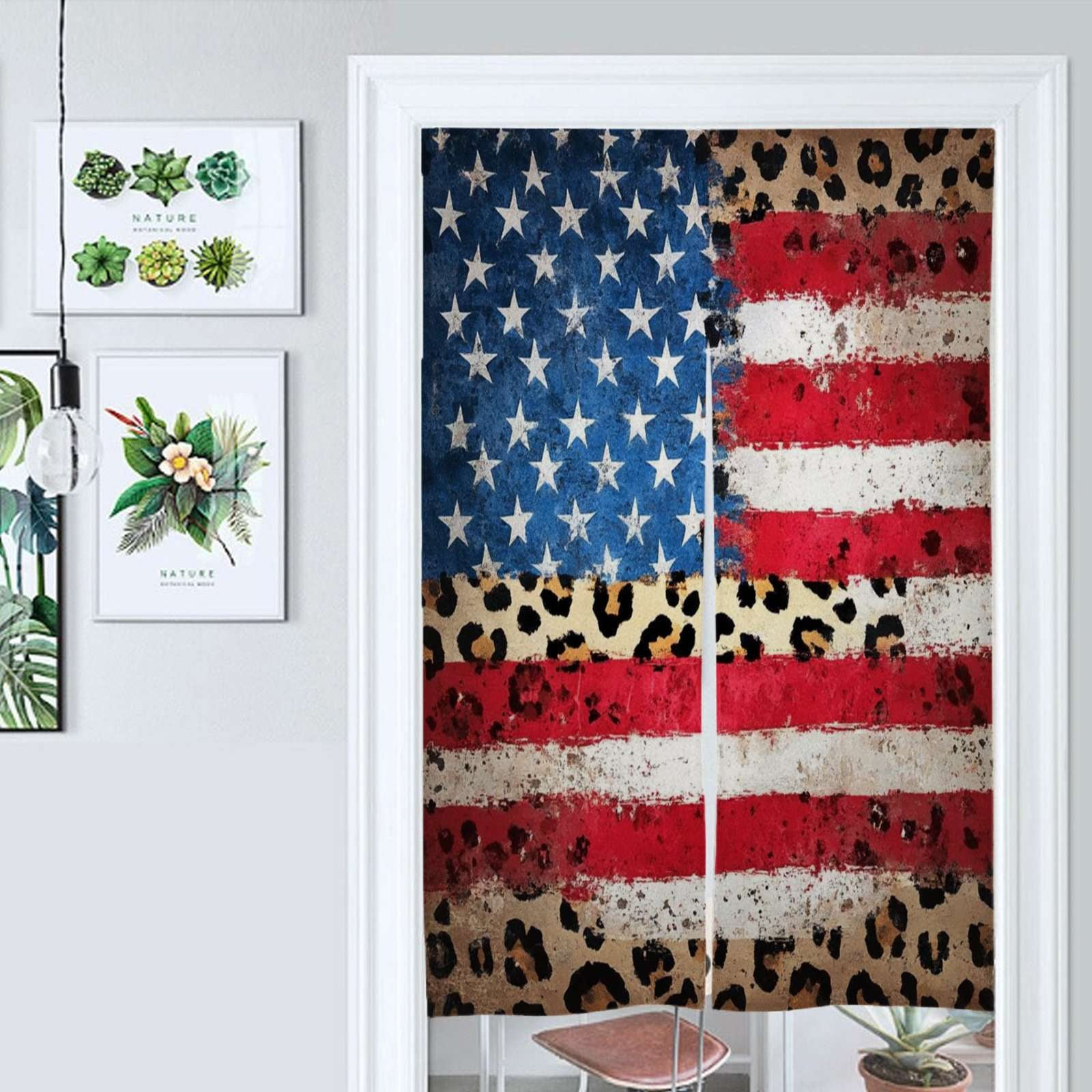 American Flag Leopard Print Door Curtain Nordic Living Room DoorCurtain