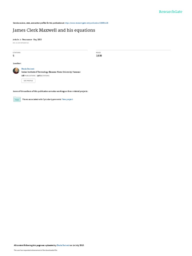James Clerk Maxwell and His Equations PDF Magnetic Field Waves