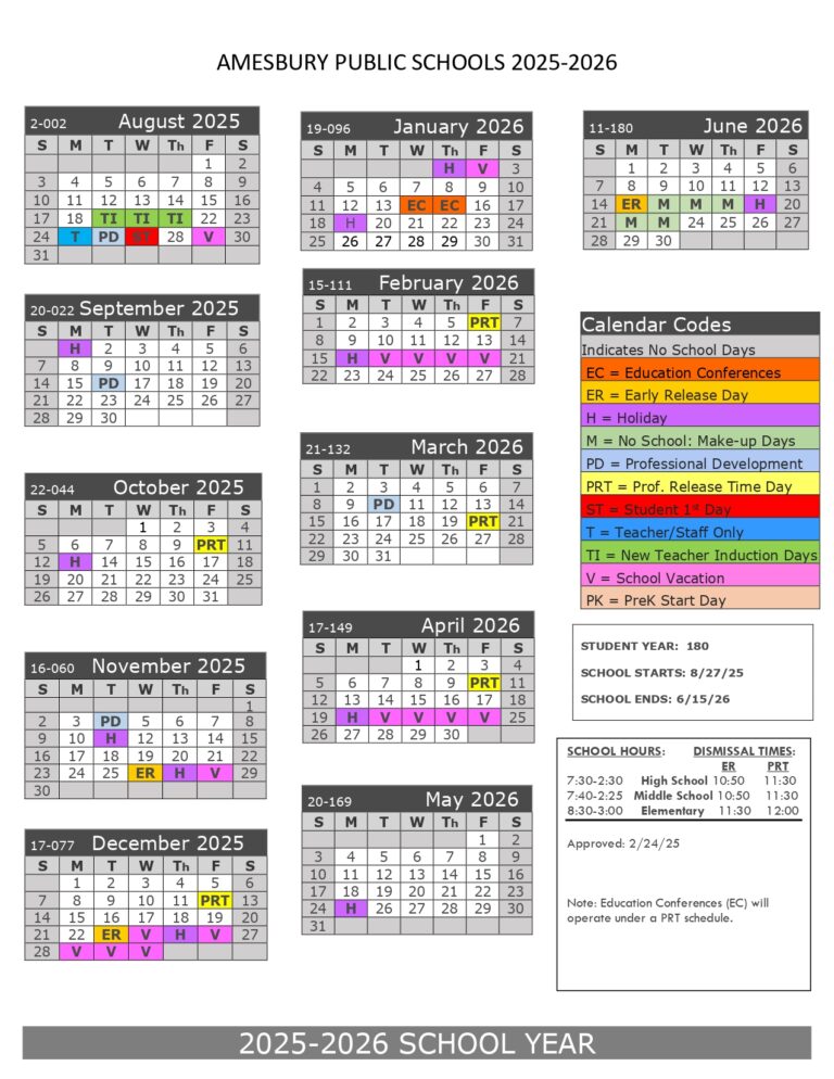 Amesbury Public Schools Calendar 25 26 Revised PDF EduCounty