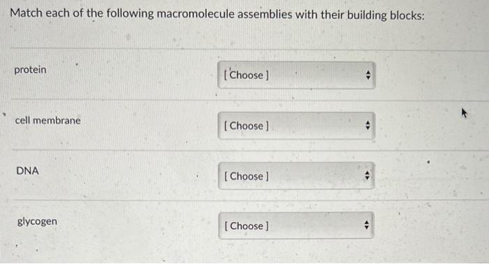 Solved Match each of the following macromolecule assemblies Chegg com