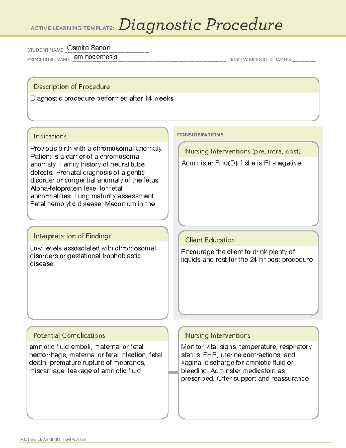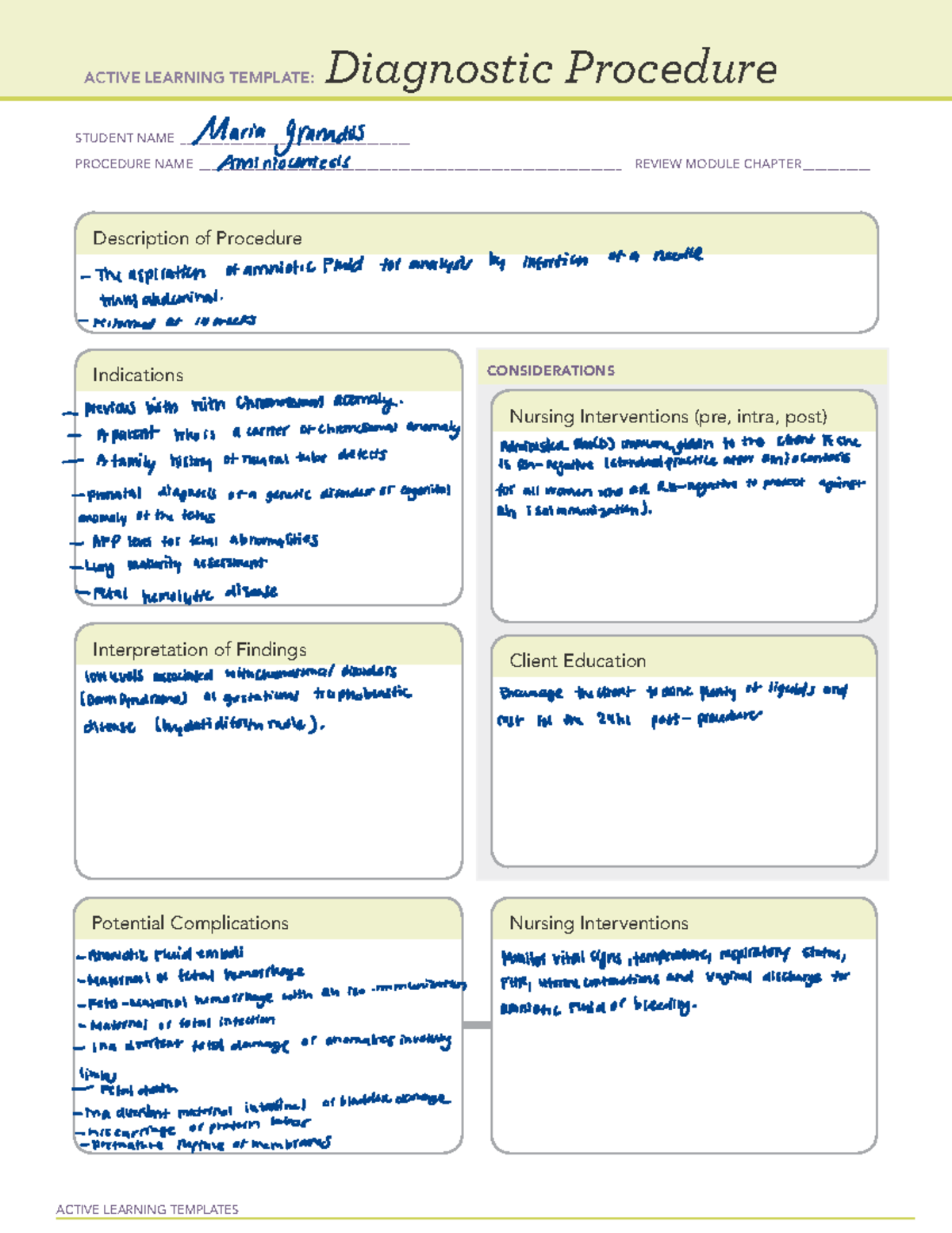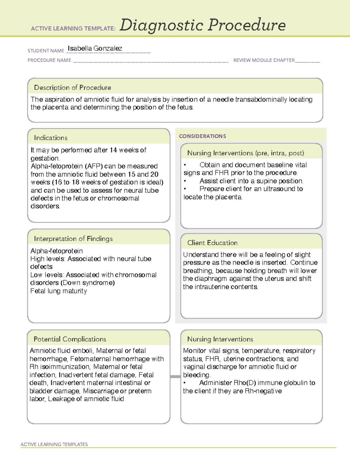 Amniocentesis Active Template pdf STUDENT NAME PROCEDURE NAME