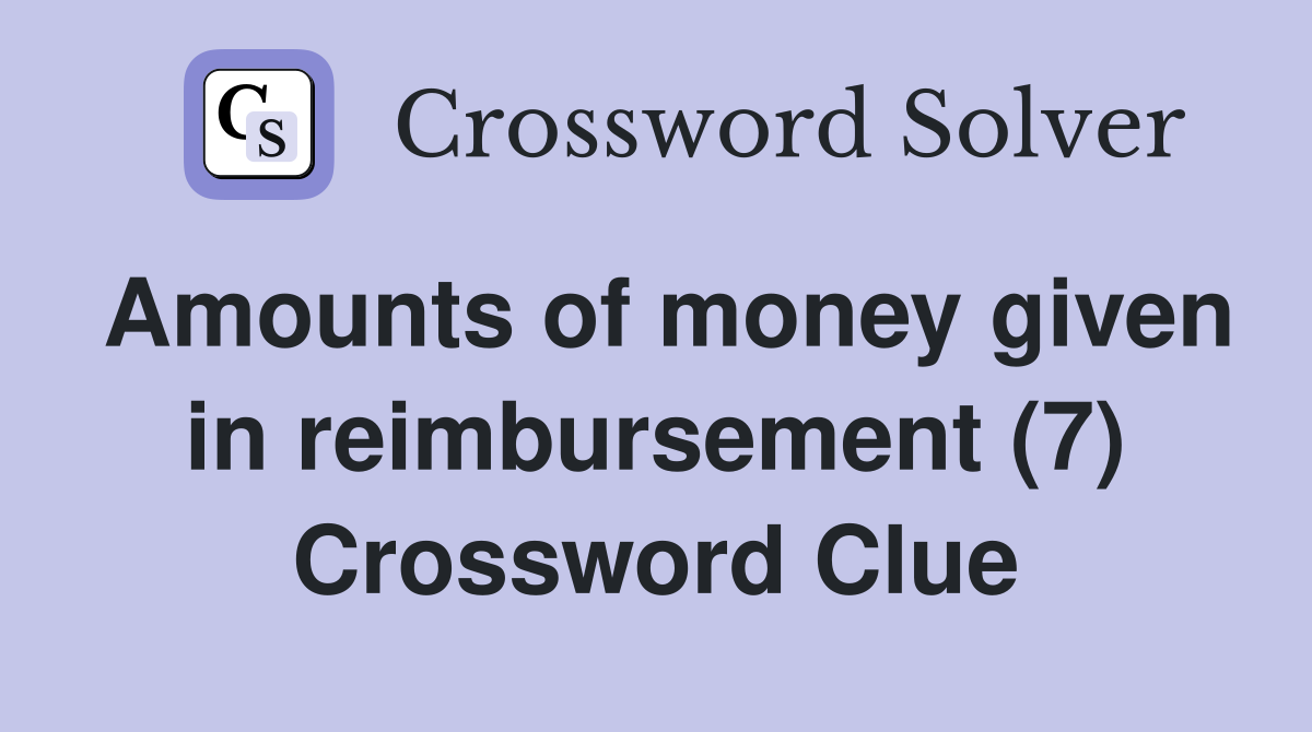 Amounts of money given in reimbursement (7) Crossword Clue Answers