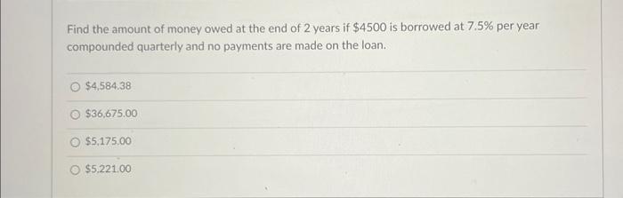 Solved Find the amount of money owed at the end of 2 years Chegg com