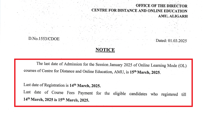 Centre for Distance Education AMU Admission 2025 Open for Online