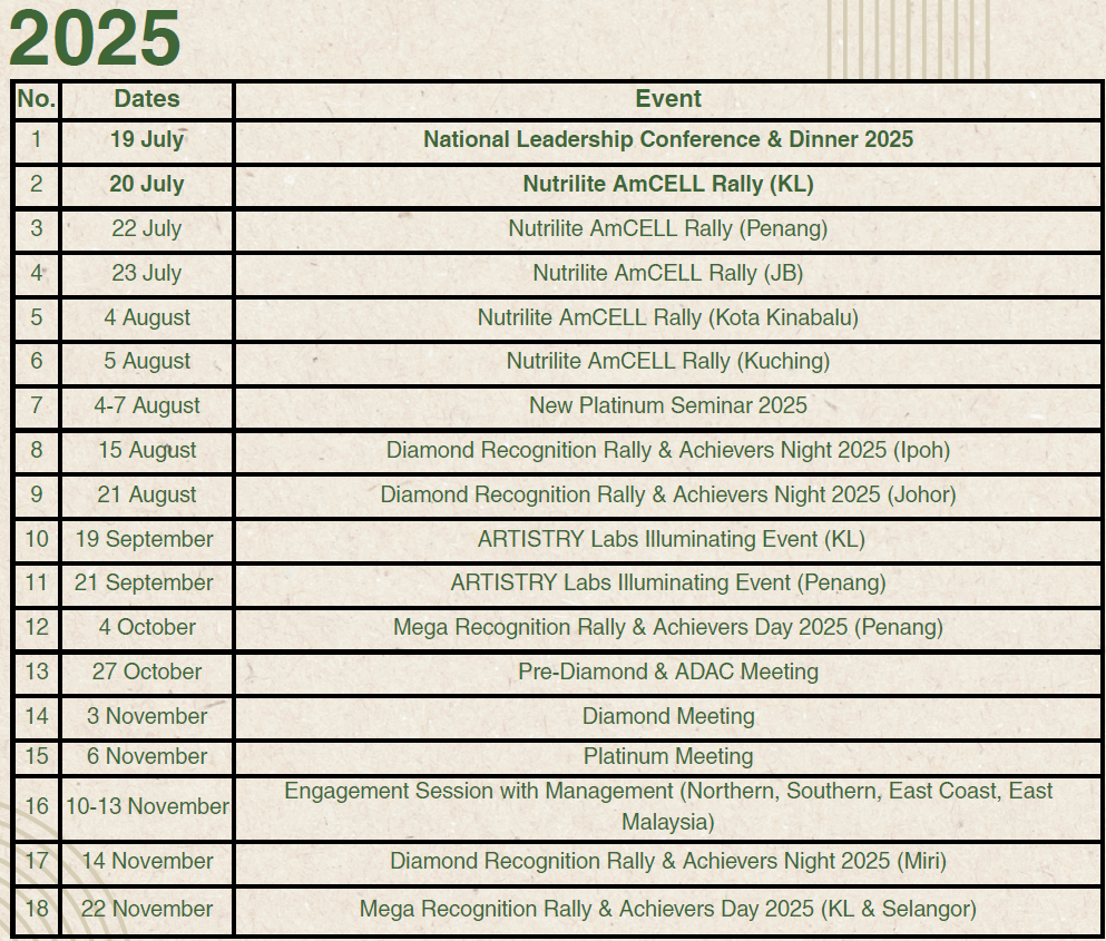 MY BN Major Events Calendar Amway MSB
