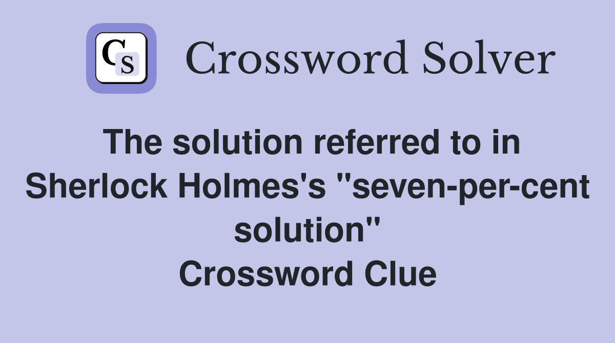 The solution referred to in Sherlock Holmes #39 s quot seven per cent solution