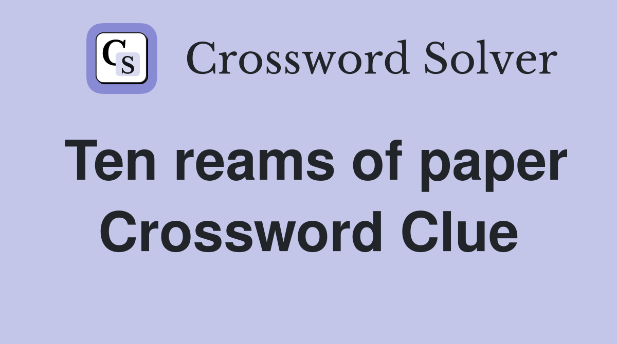 Ten reams of paper Crossword Clue Answers Crossword Solver