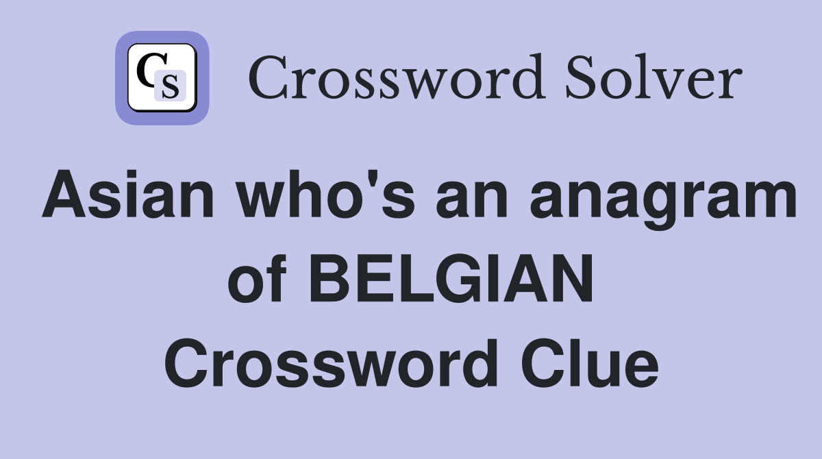 Asian who #39 s an anagram of BELGIAN Crossword Clue Answers Crossword