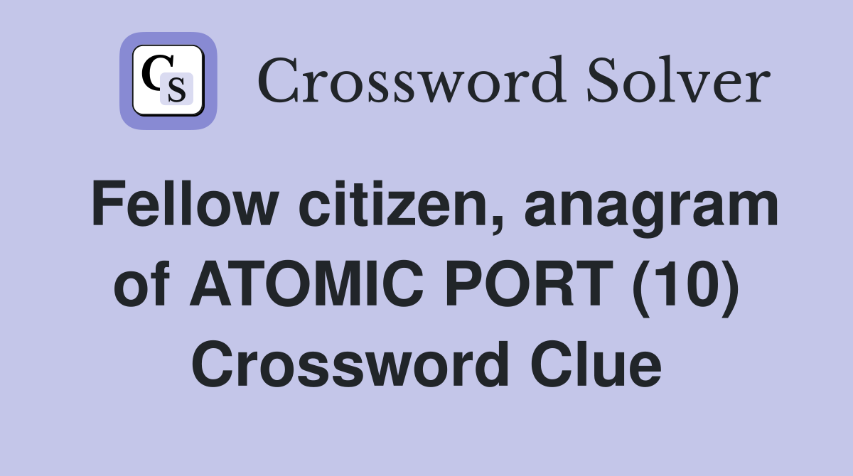 Fellow citizen anagram of ATOMIC PORT (10) Crossword Clue Answers