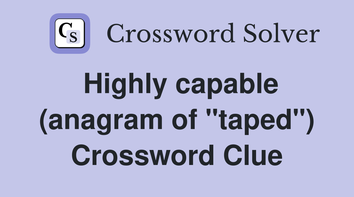 Highly capable (anagram of quot taped quot ) Crossword Clue Answers