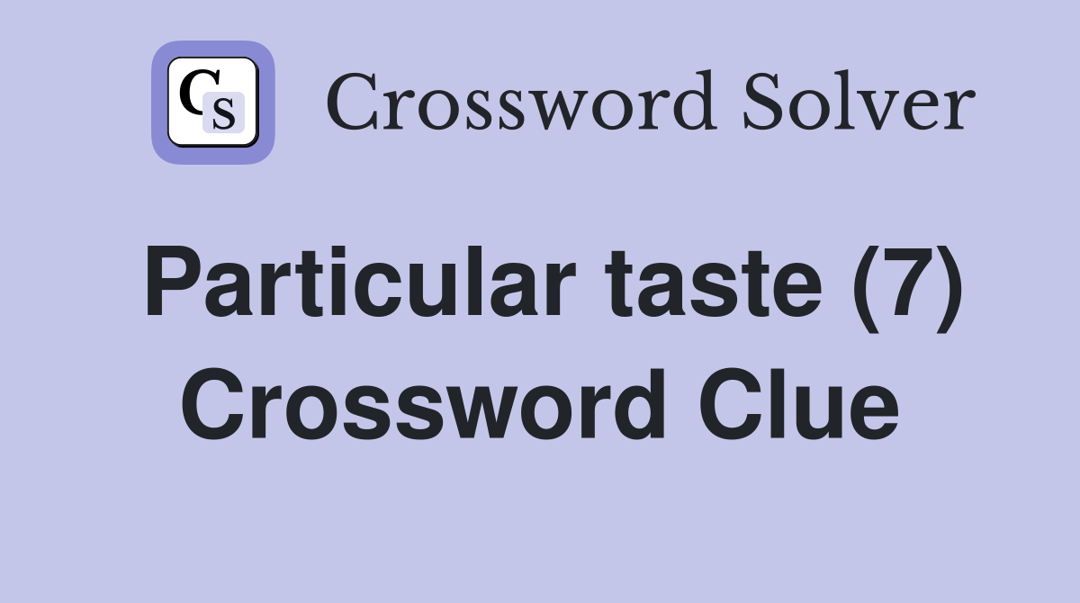 Particular taste (7) Crossword Clue Answers Crossword Solver