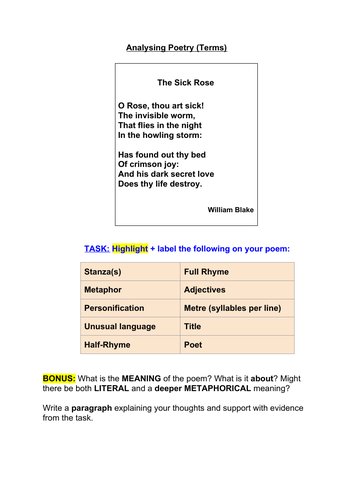 KS3 Intro to Analysing Poetry Worksheet Teaching Resources
