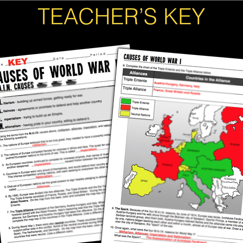World War I Map Activity MAIN Causes (WW1) by Lesson Plan Ninja