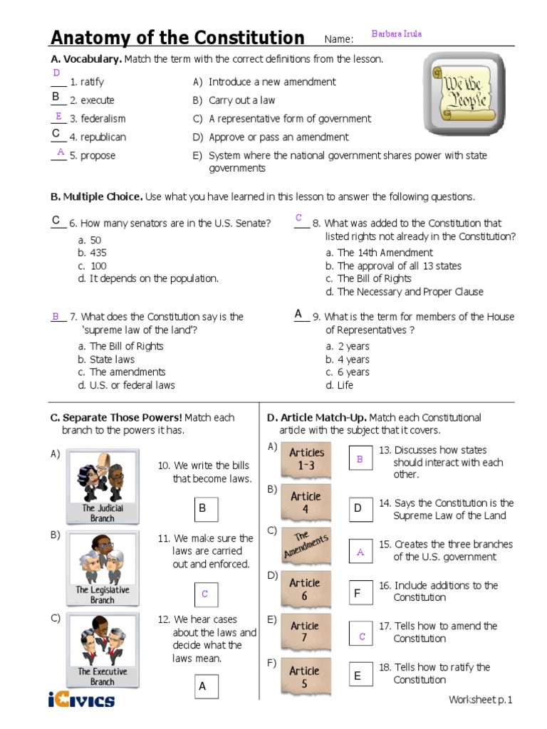 Icivics Worksheet P 1 Answers Anatomy Of The Constitution Anatomy