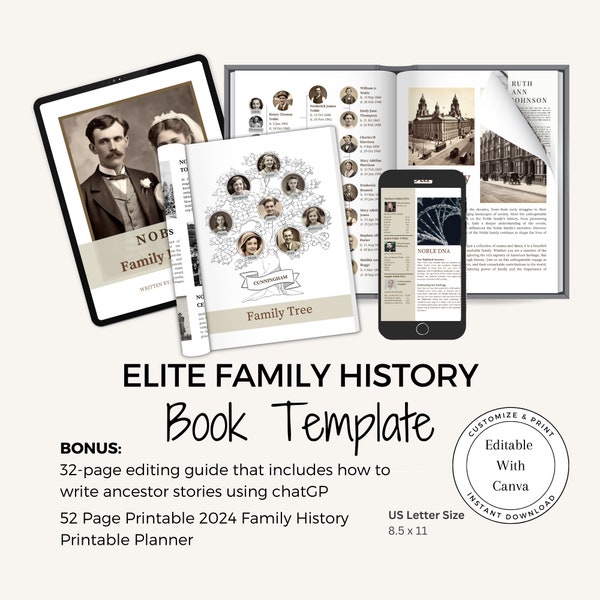 ELITE Ancestry Book Template / Family Tree / Customizable Canva Book