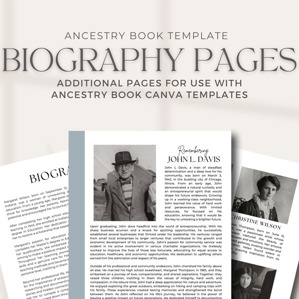 Add on Pages for Ancestry Book BIOGRAPHY PAGES for Use With Any of Our