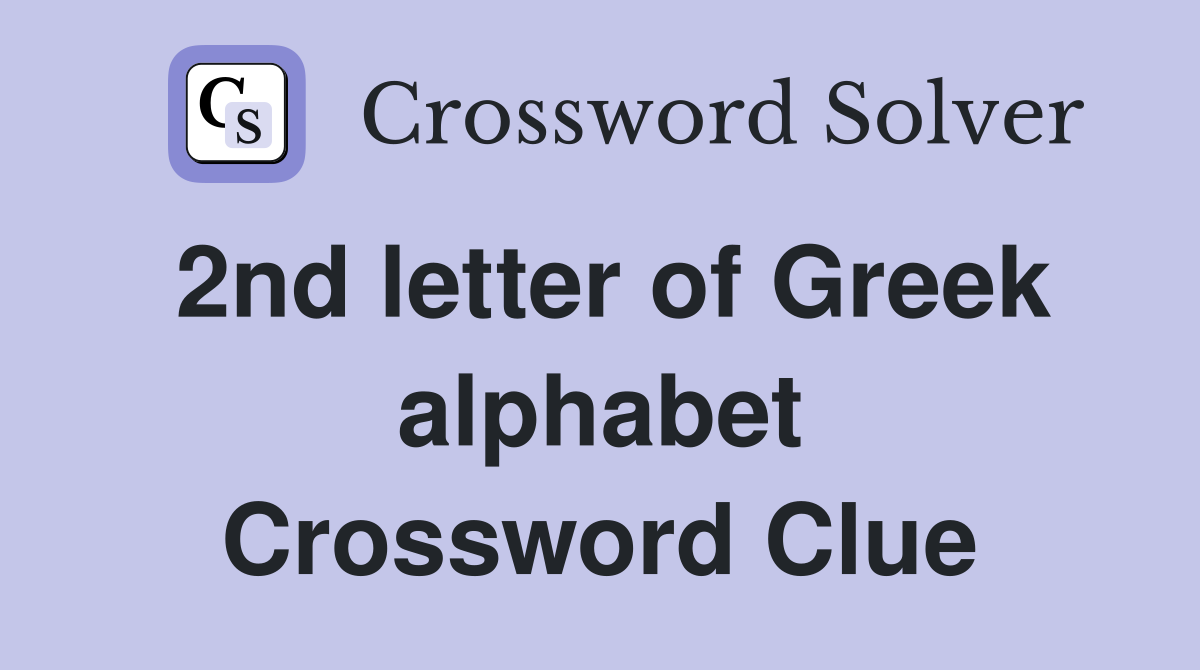 2nd letter of Greek alphabet Crossword Clue Answers Crossword Solver