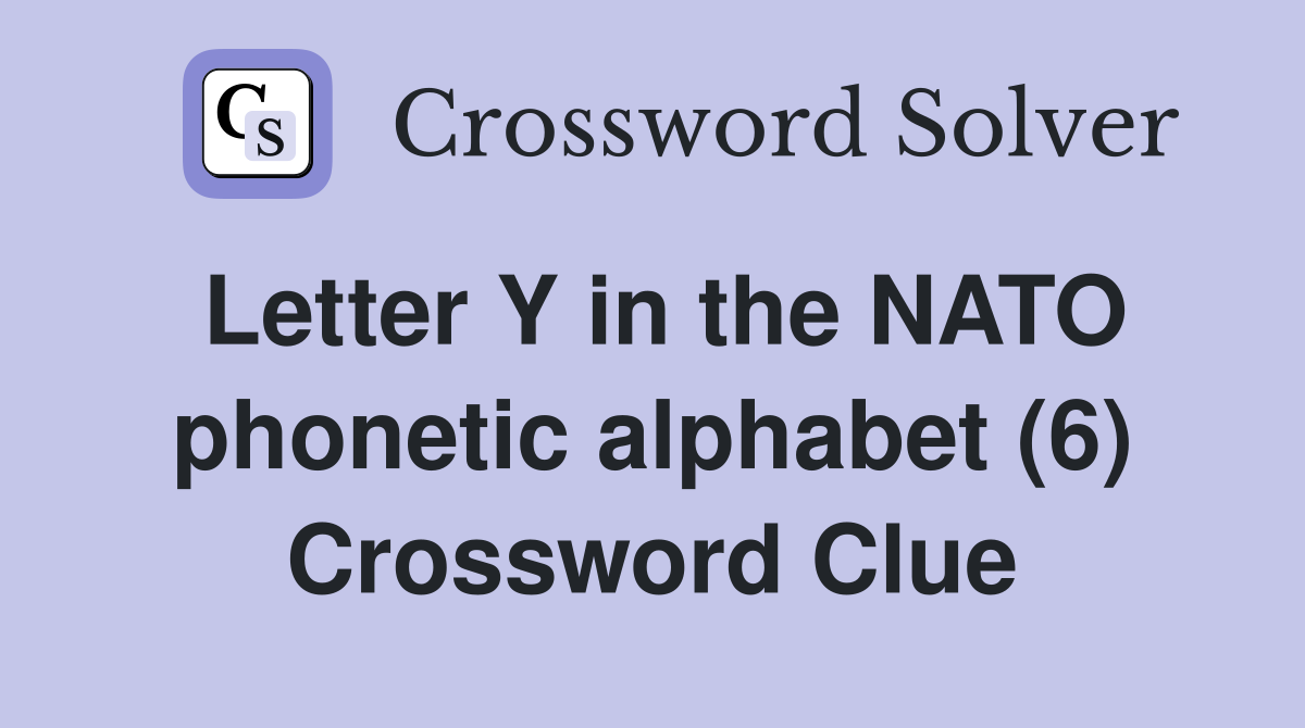 Letter Y in the NATO phonetic alphabet (6) Crossword Clue Answers