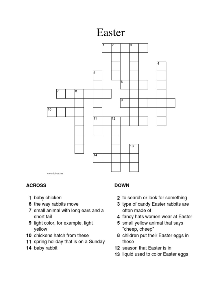 Easter Crossword Puzzle PDF Language Arts Discipline Home Garden