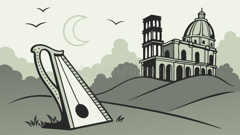 Zither Instrument Amidst Desert Ruins Vector Art Vector Design
