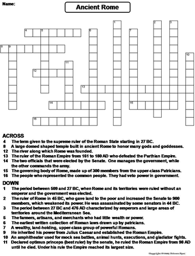 Ancient Rome Crossword Puzzle Teaching Resources